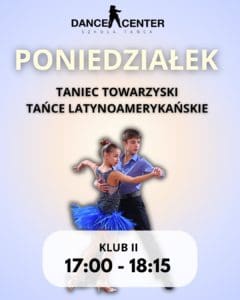 Poniedziałki w Dance Center to idealny moment, aby rozpocząć tydzień w rytmie tańca. O godzinie 17:00–18:15 odbywają się zajęcia Taniec Towarzyski – Klub II, które prowadzi nasza utytułowana kadra instruktorska.